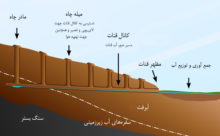 قنات راه آب یا کانالی است که در زیر زمین حفر شده تا آب در آن برای رسیدن به سطح